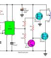 一個(gè)傳感器打開Q1來激活低頻555振蕩器,這會(huì)脈沖電燈I1。傳感器對(duì)于改變光線或者溫度是很敏感的。 :
