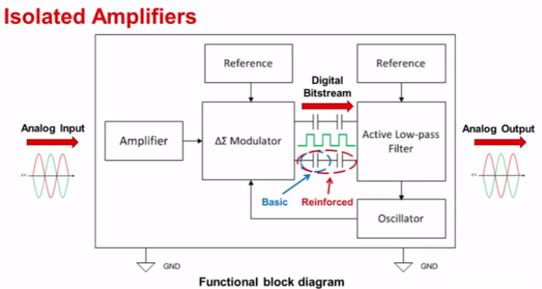 隔離放大器的目的是,通過斷開接地環(huán)路,在高電壓應(yīng)用中提供防電擊保護或者將電路中的不同部件或不同電路隔離開。