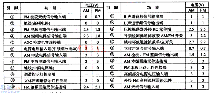 表1-1  KA2292集成電路的引腳功能及數據