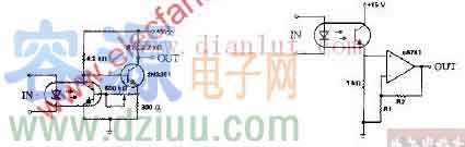 電路采用耦合器將開關電路輸入信號與開關電路輸出信號相互隔離,可降低輸出脈沖尖峰。電路中用兩個光耦合器,表示斬波器,輸入信號可正也可負。?A741是運算放大器,增益為R2/R1,可提高輸出信號的幅度。  電路