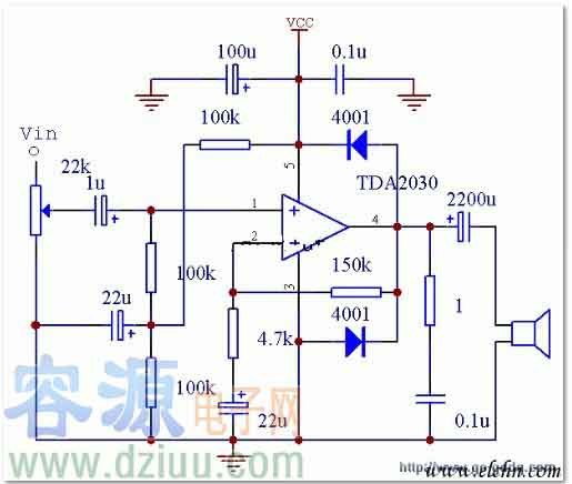 最簡(jiǎn)單tda2030a最優(yōu)電路圖(經(jīng)典電路)