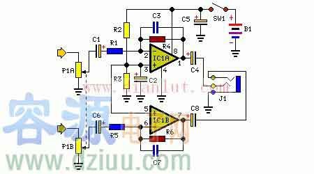 基于NE5532制作9V便攜式耳機放大器電路原理圖