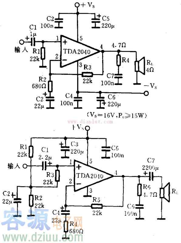 簡述關于TDA2040電路圖與TDA2040功率放大電路的相關情