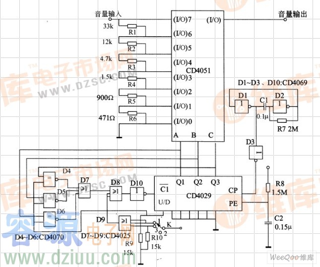 用于音響中控制音量大小的電位控制電路圖