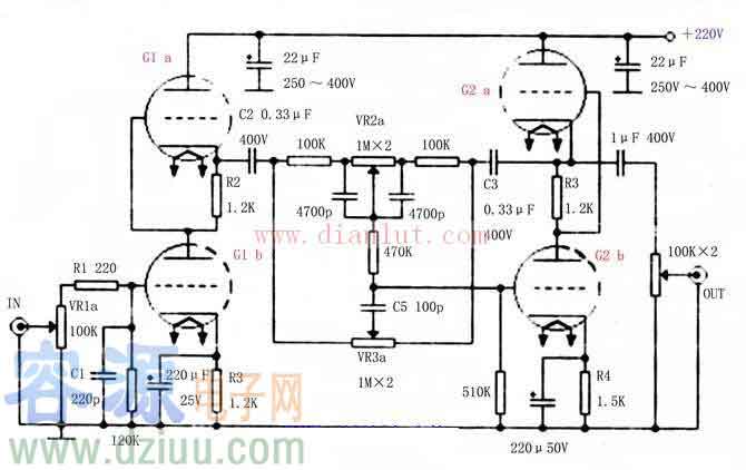 6N1是一只中μ雙三極管,μ=35,它具有R低、動態線性寬、頻率特性好、噪聲低等諸多優點,能承受較強信號輸入,并能給出足夠的輸出,既可用于電壓放大,又能用于倒相推動,在20世紀六七十年代可謂名噪一時,是各