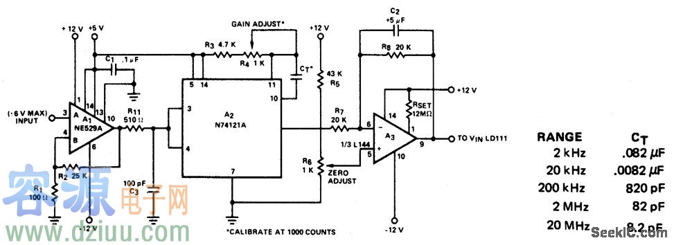 直流-10千赫頻率/電壓轉(zhuǎn)換器電路