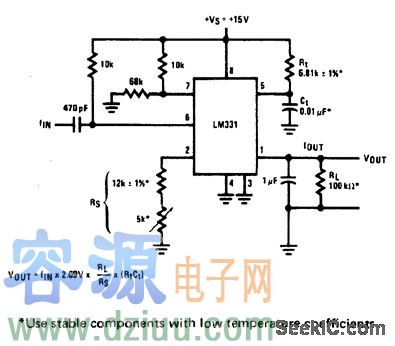 LM331頻率—電壓轉(zhuǎn)換電路(10kHz全范圍,±0.006%非線