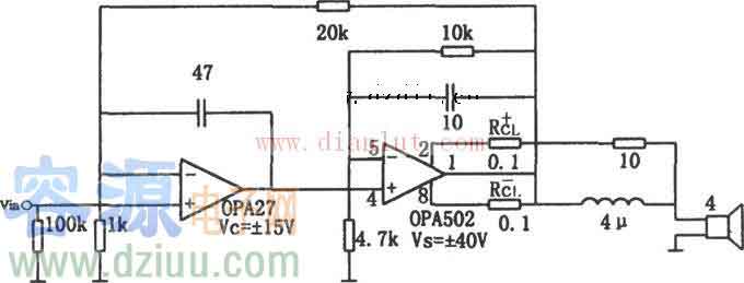 OPA502構(gòu)成的組合音響放大器電路