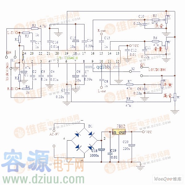 由LM4610制作的3D音調電路圖
