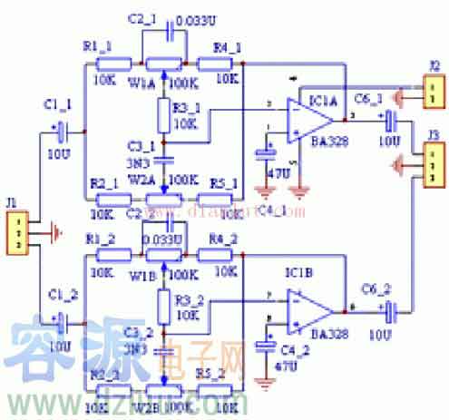 利用BA328制作的音調控制電路原理圖