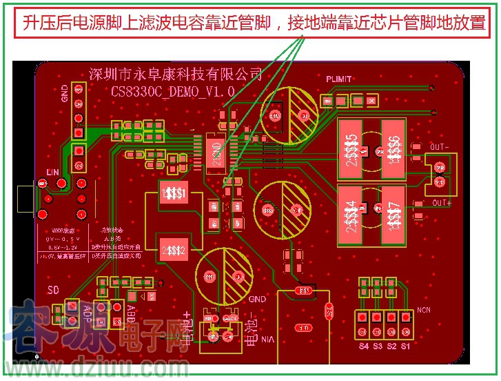 (5). 濾波電容靠近管腳,靠近芯片地管腳放置,最大化電容濾波作用。