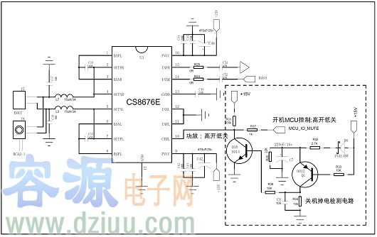 由于主控解碼芯片音頻模擬輸出的偏置電壓一般在輸出使能后建立,此時需要保持音頻功放CTRL管腳拉低(高開低關(guān)),等待主控芯片模擬輸出的偏置電壓穩(wěn)定后才可以將CTRL管腳 置高開啟功放。相反,關(guān)機時,需要關(guān)閉主芯片音頻模擬輸出功能時,需要先拉低CTRL管腳將功放關(guān)閉后,再關(guān)閉主控芯片的模擬輸出信號。這樣的時序是為了保證主芯片模擬輸出的偏置電壓掉電時不會引起POP 聲。通過主控軟件調(diào)整時序解決開關(guān)機POP聲對軟開關(guān)機音箱非常適用,對硬開關(guān)機的音箱開機也很好處理,但關(guān)機由于主控不受控,需要外圍加掉電檢測電路來解決。