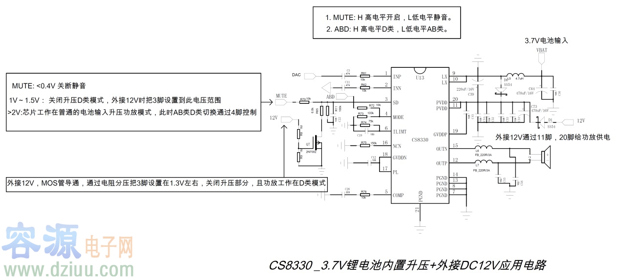 CS83702 單節(jié)鋰電3.7V內(nèi)置升壓18W/2歐單聲道音頻功放I