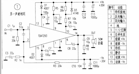 TDA7293是ST(SGS-THOMSON)公司出品的一款大功率高電壓DMOS高保真功放IC,額定輸出功率為100W,最大工作電壓為120V。它是一個整體集成電路Multiwatt15封裝,作為音像類AB,放大器在高保真領域應用非常高工作電壓范圍;(±50V)最高工作電壓±60V;DMOS;力量階段高產品力量(100W;@;THD;=;10%,;RL;=;8歐姆;電壓=;±40V)。