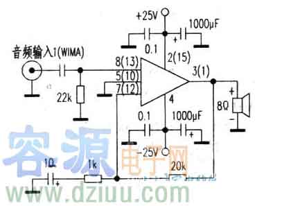20W音頻放大器工作電路原理圖