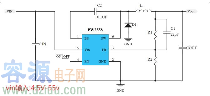 | PW2558 | 4.5V-55V | 1.25V-30V | 0.8A | 1.2 MHz | SOT23-6 |