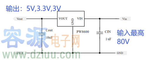 | PW8600 | 4.5V-80V | 3V,3.3V,5V | 150MA | 2 uA | Sot23-3 |