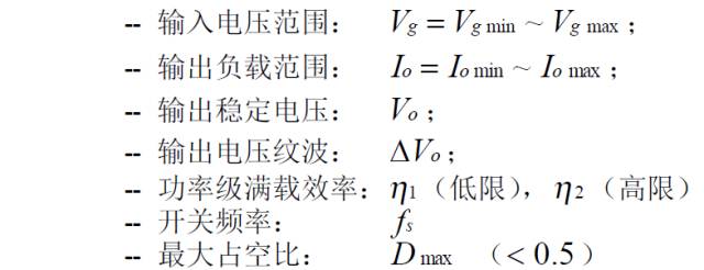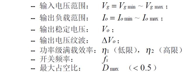 (2):二極管去磁雙正激變換器的主要穩態規格: