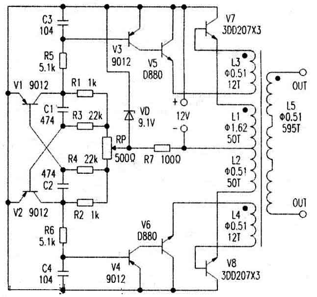 兩個三極管構成簡易逆變器電路圖(傻瓜逆變器電路圖)