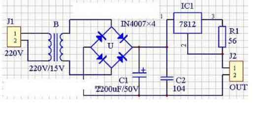 三端7812集成穩壓電源電路
