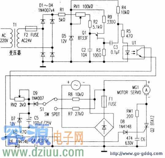 該直流電機(jī)控制器使用光耦隔離器件,雙向可控硅等元件制作,裝置結(jié)構(gòu)簡單,輸出功率較大。經(jīng)過反復(fù)調(diào)試多次實(shí)驗(yàn),工作安全可靠,而且使用單層印板即可實(shí)現(xiàn),制作成本低(筆