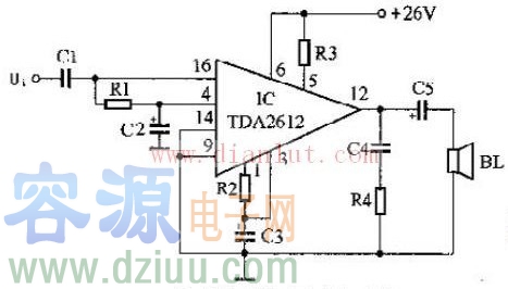 TDA2612應用電路圖(單聲道OTL功率放大器)