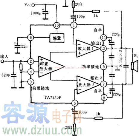 TA7250/TA7250P功率放大電路圖原理圖