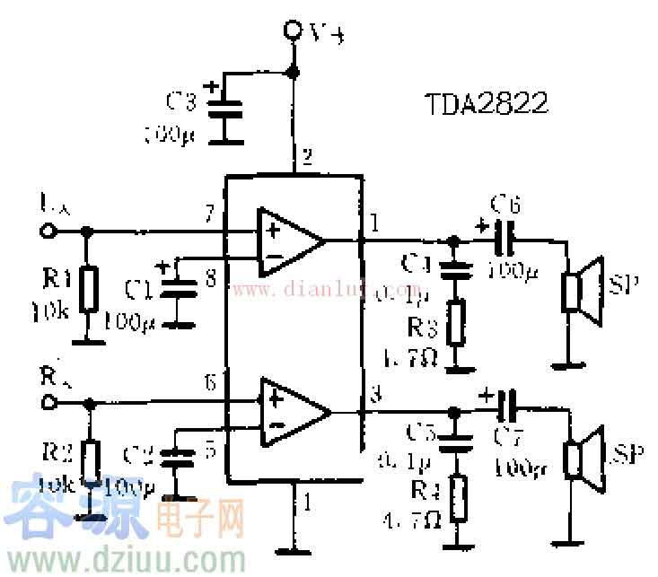 TDA2822是單片集成電路12 +2 +2 powerdip,使用雙音頻 ,功率放大器適用于便攜式收音機和普通型的功放機廣泛使用。 :