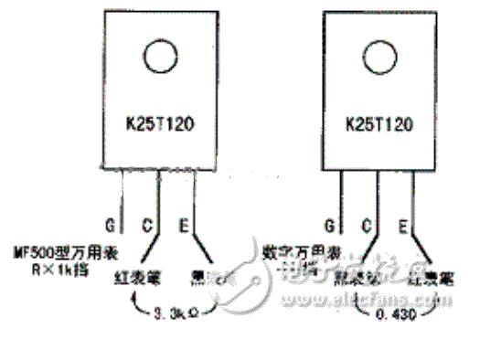 電磁爐IGBT管好壞的檢測方法IGBT管的好壞可用指針萬用表的Rxlk擋來檢測,或用數字萬用表的“二極管”擋來測量PN結正向壓降進行判斷。檢測前先將IGBT管三只引腳短